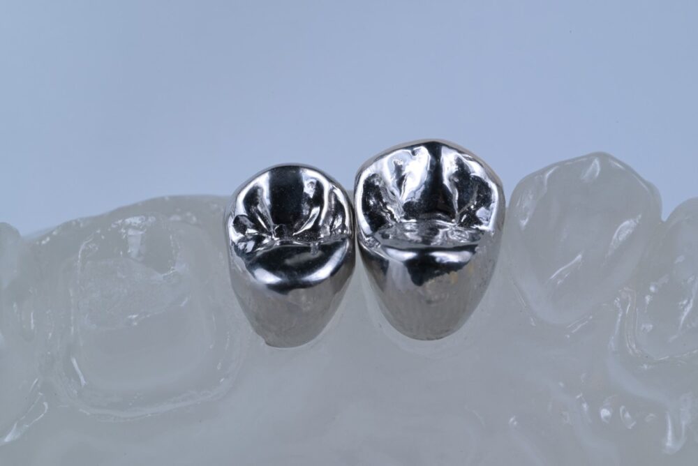 メタルクラウンは、虫歯治療や歯の欠けを補う際に使用される金属製の被せ物です。日本では保険が適用されるため費用を抑えて治療できるメリットがあります。強度が高く奥歯など噛む力が強い部分にも適していますが、一方で銀色が目立つため審美性に劣り、長期使用により金属アレルギーや歯ぐきの変色を起こす可能性があります。また、金属と歯の間にすき間ができやすく二次虫歯のリスクがある点も注意が必要です。