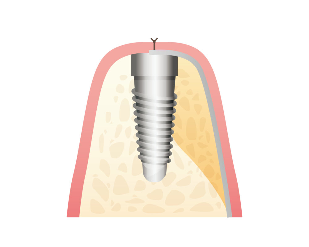 骨量が不足している部分の歯茎を切開し、上顎洞の側面に穴を開けます。そして専用の器具でシュナイダー膜を慎重に剥離して上顎洞を直接持ち上げます。持ち上げてできたスペースに自家骨や人工の骨補填材を移植し骨の厚みを増やします。骨の厚みが3〜5mm以下の場合や複数の歯の骨が欠損している場合に適応される方法です。個人差はありますが、移植した骨が安定するまでに6ヶ月〜1年ほどかかります。