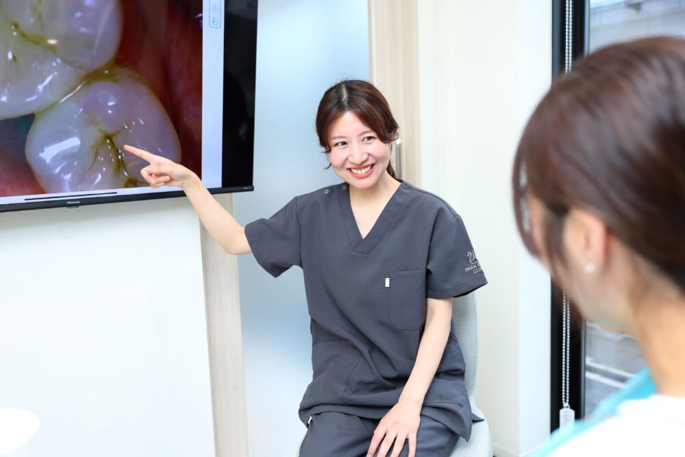 ただし、歯ぐきが腫れていたり、歯石が多く付着している場合には、一時的にしみる・チクチクすると感じることがあります。