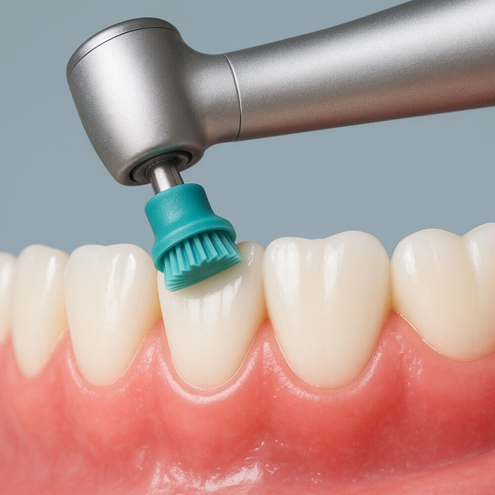 仕上げに歯の表面を研磨しフッ素の含まれるジェルやペーストを塗布していきます。フッ素には歯を強化する作用がありますので虫歯や歯周病予防に最適です。