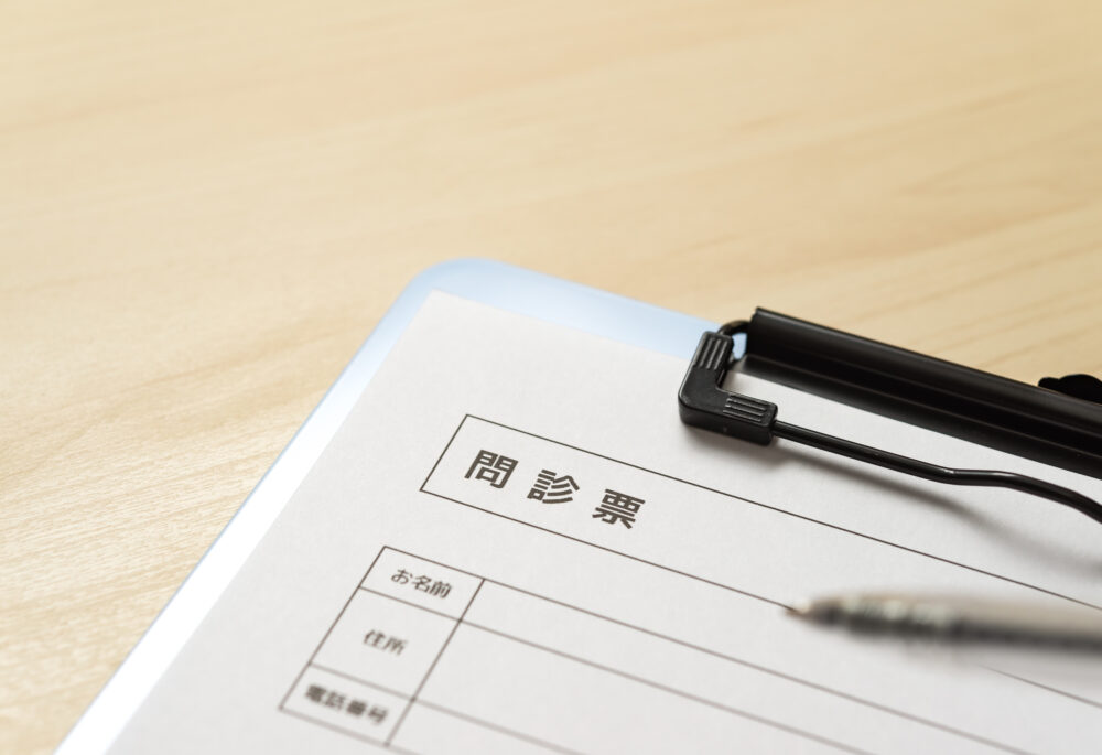 お電話もしくはWEB予約にてご来院予約をしていただき、ご予約日に当院へお越しいただきます。初めてご来院される患者様は待合室にて問診票をご記入いただきます。(お持物:マイナンバーカードもしくは保険証)